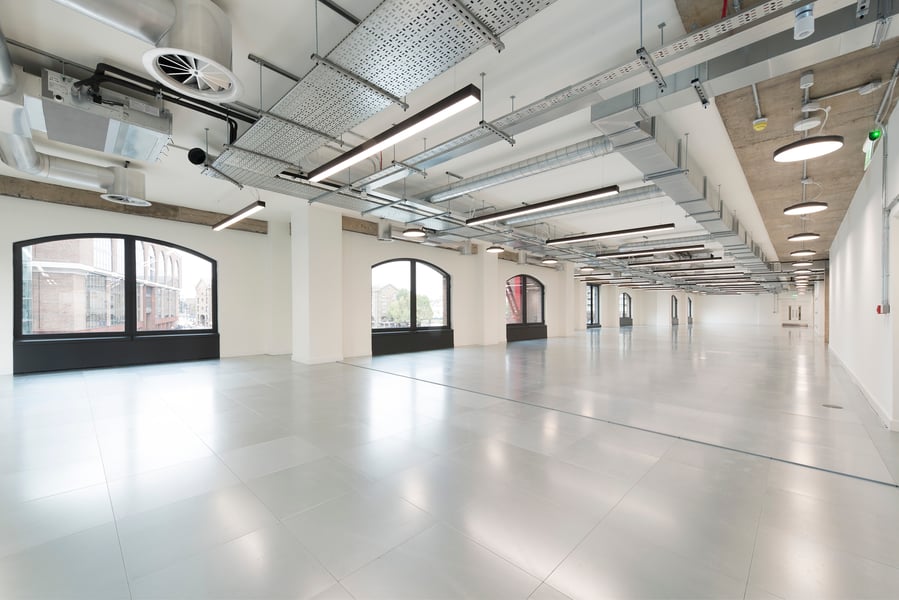4 Floors high spec CAT-A fit out, VRV installation with exposed services including aluminium cladding to ductwork services and WC fit-out.